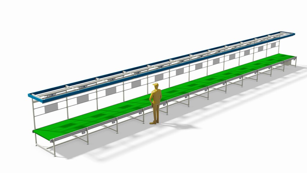 - Curved Belt Conveyor: 90° and 180° turning for circular assembly lines.